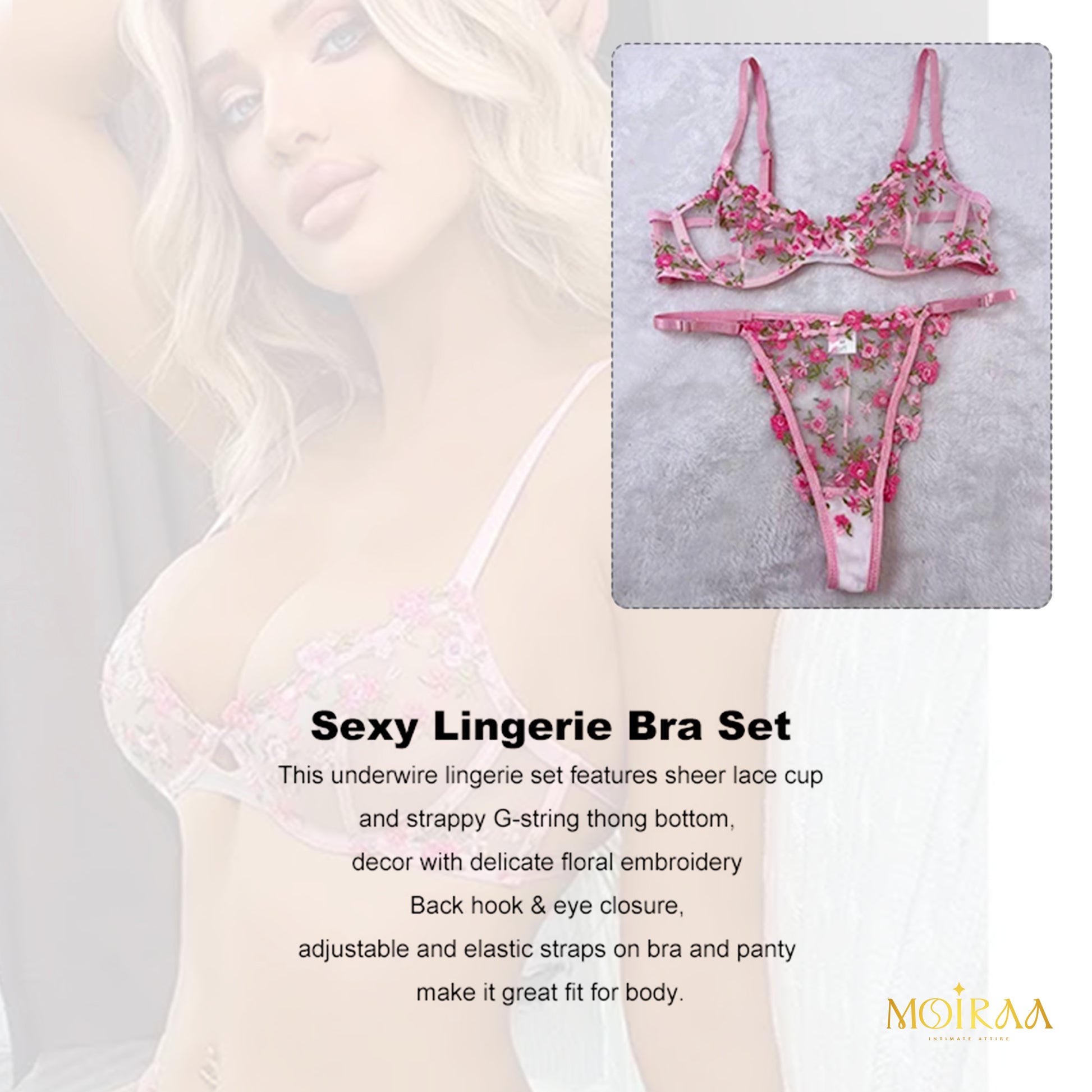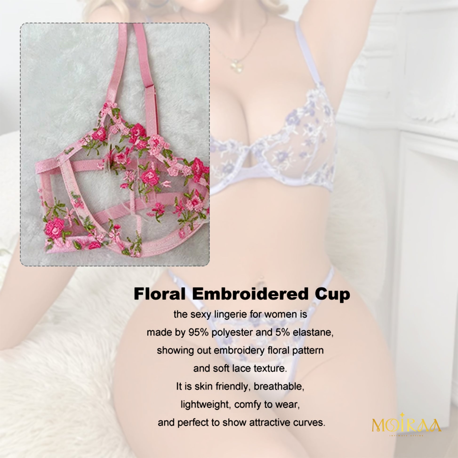 🌺 Floral Embroidery & Sheer Mesh – Elegant lacework for a romantic and alluring look