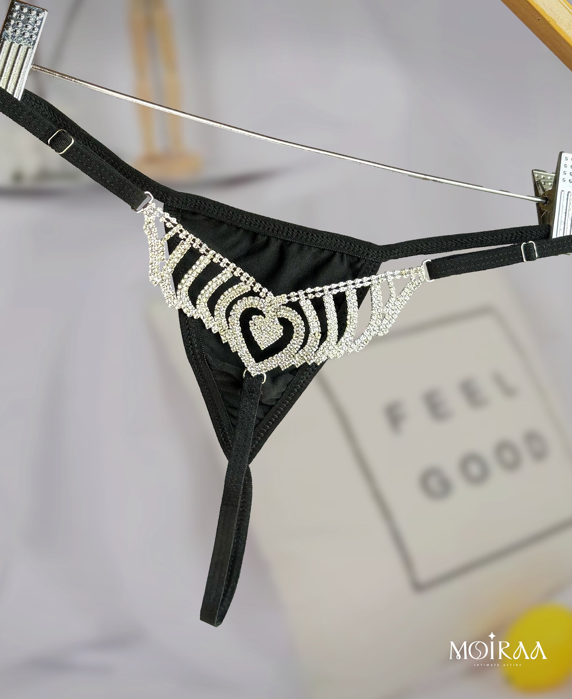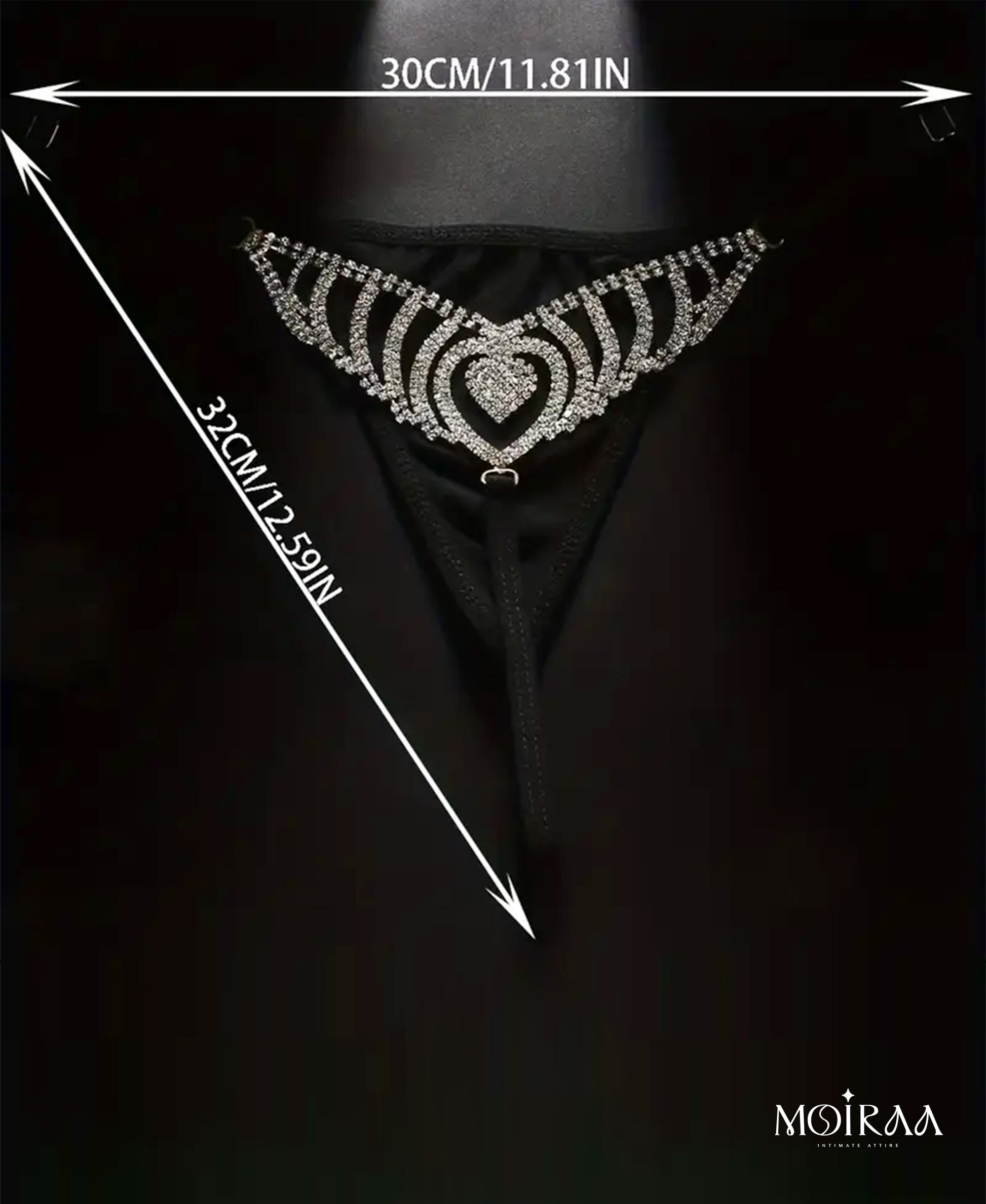 Turn every occasion into a celebration with this dazzling Heart Thong G-String – more than lingerie, it’s jewelry for your body. Crafted with iron base and shimmering rhinestones, this piece is designed to sparkle under the lights and highlight your curves.