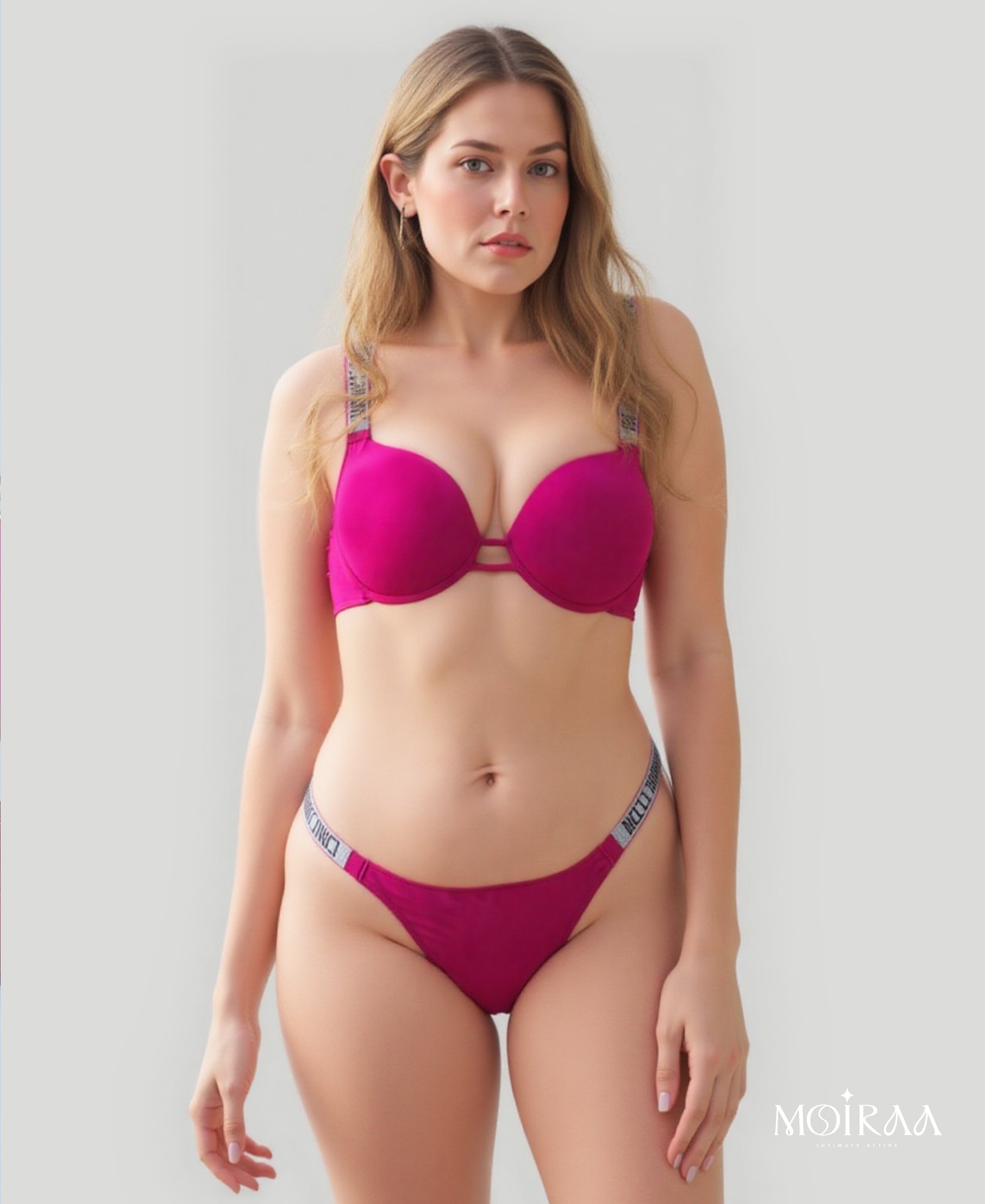 Elevate your lingerie collection with the perfect blend of comfort and sparkle. The Moiraa Rhinestone Secret Bra & Panty Set is thoughtfully designed to provide everyday ease while adding a touch of luxury glamour.